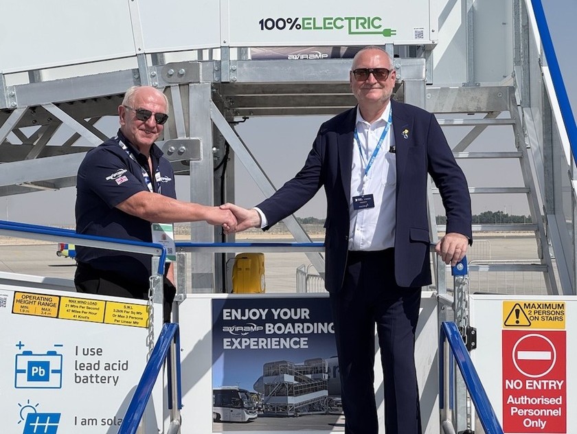 Telford-based Aviramp completed the deal with global powerhouse dnata at this year’s Dubai Airshow, where it demonstrated one of its pioneering solar-powered ramps in partnership with the firm.