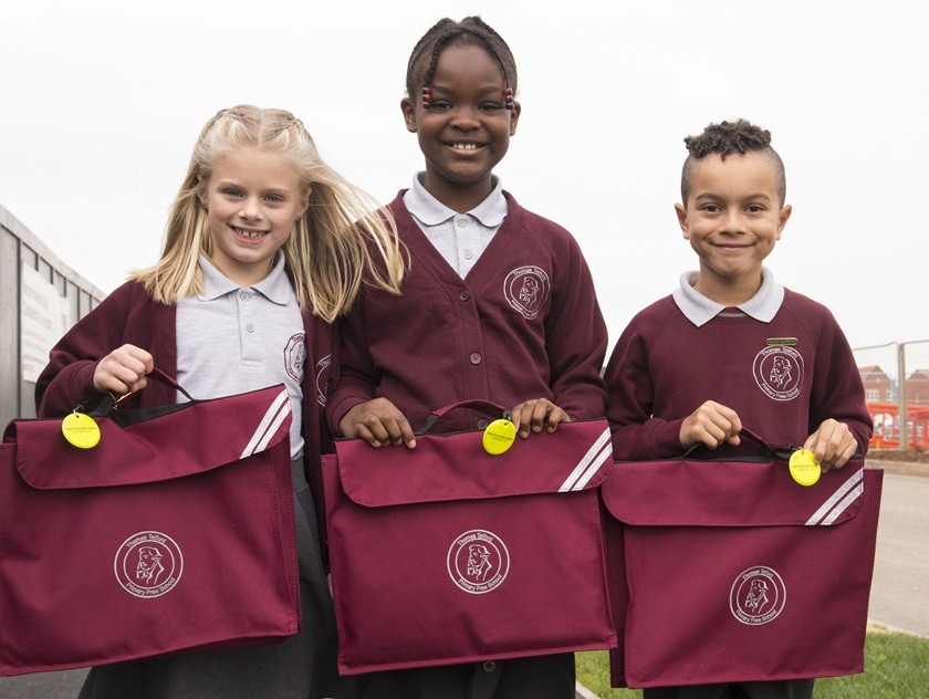 Pupils at Thomas Telford Primary Free School in Telford have received a donation of reflective bag tags from David Wilson Homes.